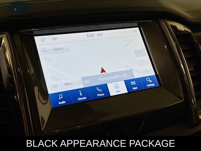 The rugged FX4 Off-Road Package equips this Ranger with an off-road-tuned suspension, electronic-locking rear differential, and terrain management system, ensuring you conquer even the most challenging terrain with confidence. The Black Appearance Package adds a bold, aggressive flair with its blacked-out grille, mirror caps, and 18-inch black-painted aluminum wheels.