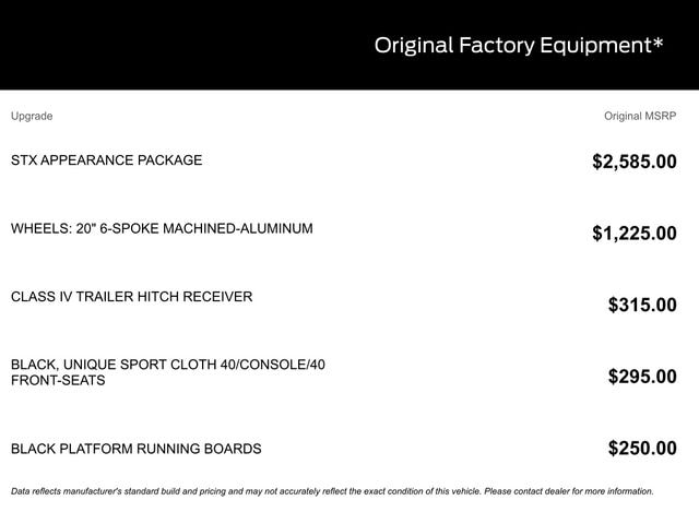The STX Appearance Package adds a touch of rugged sophistication, with a molded-in color black honeycomb grille, body-color front and rear bumpers, and 18-inch machined aluminum wheels. Inside, the unique sport cloth 40/20/40 front seats provide both comfort and style, while the SYNC 4 infotainment system keeps you connected with enhanced voice recognition and wireless phone integration.