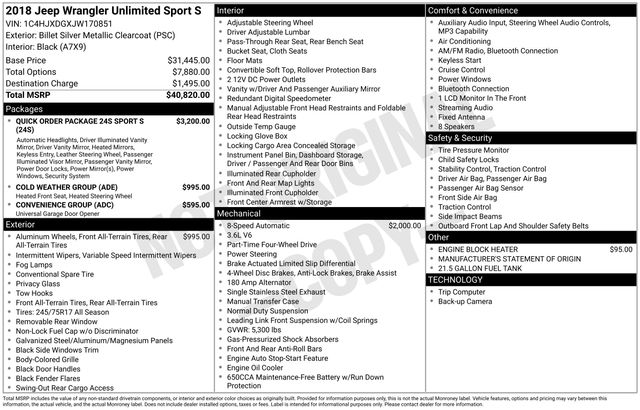 2018 Jeep Wrangler Unlimited Sport S SUV V6 24V VVT