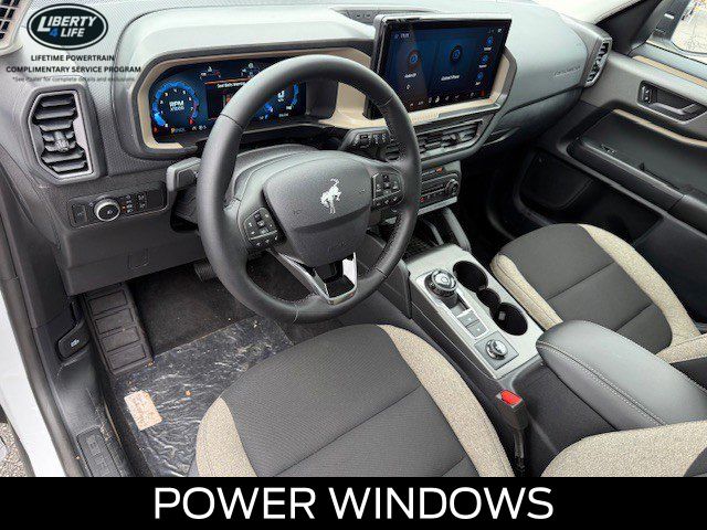 I got a 2025 Big Bend with the black diamond off road package. The steel modular front and rear in combination with bush guard gives this year model. A very aggressive off road look. With the ability to easily mount accessories and power them with the factory installed auxiliary switches. Hitch receiver seamlessly mounted into the rear steel bumper flanked by some very chunky recovery points. The upgraded aluminum rims wrapped with Continental all-terrains. It make this the most capable bronco sport yet. The interior of the 2025 has been updated with a new 13 inch touchscreen with Android Auto and apple car play. The lines of the dash flow elegantly from the new infotainment screen to the new all digital 12 inch gauge chaster. Toggling through the different modes on the gauge chaster is very intuitive, and all the displays are laid out very cleanly. Moving from gauge chaster the center storage cubby just below the infotainment screen there is a wireless charger and USB/ USB-c ports. The passenger side of that same cubby gets a handle and a matching one on the roof just in case the driver bucks a little too much. The passenger also gets a mesh storage area. That leads us to the fact this vehicle has tons of storage options all throughout. You have pockets on the sides of the front two seat big enough for the latest new phones. Very generous door storage on all four doors plus huge glove box and center console with 12 volt outlet. The back side of the center console has air vents and another 12 volt outlet plus a 110 outlet. Now getting to the cargo area it is massive for a crossover SUV. With off road package you get a cargo management system and a very nice rubber mat. Under that there is a full size tire plus scissor jack and funnel to use with the capless filler system. On the liftgate there isa pair of very bright led lights turned on with a switch in the cargo area. This feature packed vehicle has tons awesome gadgets and hidden a little homages I spend all day just talk that. At the end of the day it is car. So how does it drive. It is wonderful, the steering and pedal response is beautiful. Rides very smooth and little to no road noise going down the highway. The active cruise control and co-pilot 360 have been very handy. The car literally drives itself most of the time. There is not enough good things I could same about this car. I love it and you pick one too. You will see what I mean. - 5.0