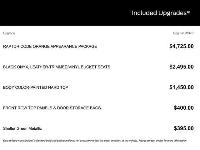 - SpecialPackage: Raptor® Code Orange Appearance Package
