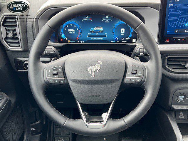 I got a 2025 Big Bend with the black diamond off road package. The steel modular front and rear in combination with bush guard gives this year model. A very aggressive off road look. With the ability to easily mount accessories and power them with the factory installed auxiliary switches. Hitch receiver seamlessly mounted into the rear steel bumper flanked by some very chunky recovery points. The upgraded aluminum rims wrapped with Continental all-terrains. It make this the most capable bronco sport yet. The interior of the 2025 has been updated with a new 13 inch touchscreen with Android Auto and apple car play. The lines of the dash flow elegantly from the new infotainment screen to the new all digital 12 inch gauge chaster. Toggling through the different modes on the gauge chaster is very intuitive, and all the displays are laid out very cleanly. Moving from gauge chaster the center storage cubby just below the infotainment screen there is a wireless charger and USB/ USB-c ports. The passenger side of that same cubby gets a handle and a matching one on the roof just in case the driver bucks a little too much. The passenger also gets a mesh storage area. That leads us to the fact this vehicle has tons of storage options all throughout. You have pockets on the sides of the front two seat big enough for the latest new phones. Very generous door storage on all four doors plus huge glove box and center console with 12 volt outlet. The back side of the center console has air vents and another 12 volt outlet plus a 110 outlet. Now getting to the cargo area it is massive for a crossover SUV. With off road package you get a cargo management system and a very nice rubber mat. Under that there is a full size tire plus scissor jack and funnel to use with the capless filler system. On the liftgate there isa pair of very bright led lights turned on with a switch in the cargo area. This feature packed vehicle has tons awesome gadgets and hidden a little homages I spend all day just talk that. At the end of the day it is car. So how does it drive. It is wonderful, the steering and pedal response is beautiful. Rides very smooth and little to no road noise going down the highway. The active cruise control and co-pilot 360 have been very handy. The car literally drives itself most of the time. There is not enough good things I could same about this car. I love it and you pick one too. You will see what I mean. - 5.0