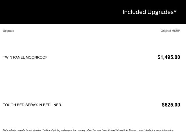 SUNROOF / MOONROOF, LEATHER SEATS, BACK UP CAMERA, BLUETOOTH, HEATED SEATS, TOW PACKAGE / TRAILER HITCH, PREMIUM WHEELS, POWER WINDOWS, POWER LOCKS, MULTI-ZONE CLIMATE CONTROL, STEERING WHEEL CONTROLS, PREMIUM AUDIO, AWD / 4WD, LANE DEPARTURE WARNING, LANE KEEP ASSIST, APPLE CARPLAY, ANDROID AUTO, FORD SYNC, AUTOMATIC EMERGENCY BRAKING, FORWARD COLLISION WARNING, REAR CROSS TRAFFIC WARNING, 4WD, Equipment Group 801A Standard, Internet access capable: FordPass Connect 5G, Tough Bed Spray-In Bedliner, Twin Panel Moonroof. Recent Arrival!
