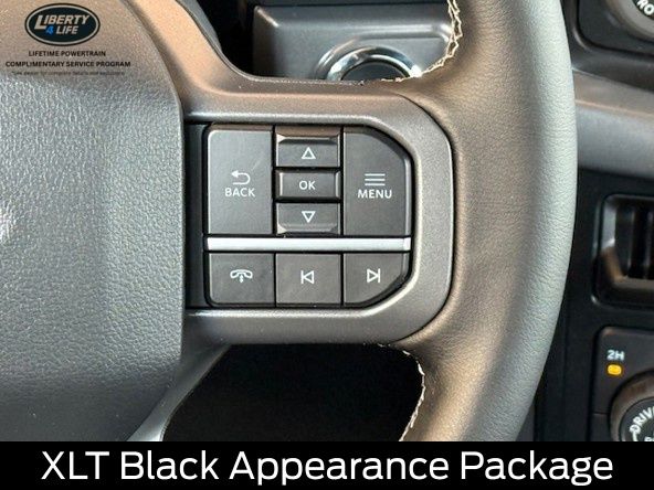 The XLT Black Appearance Package further enhances the bold, confident styling of this truck, with a Black Grille, Gray Box Side Decal, Black Exterior Badging, and 6" Black Running Boards. The Body-Color Front & Rear Bumpers and Dark Interior Appliques create a striking, cohesive look that is sure to turn heads.
