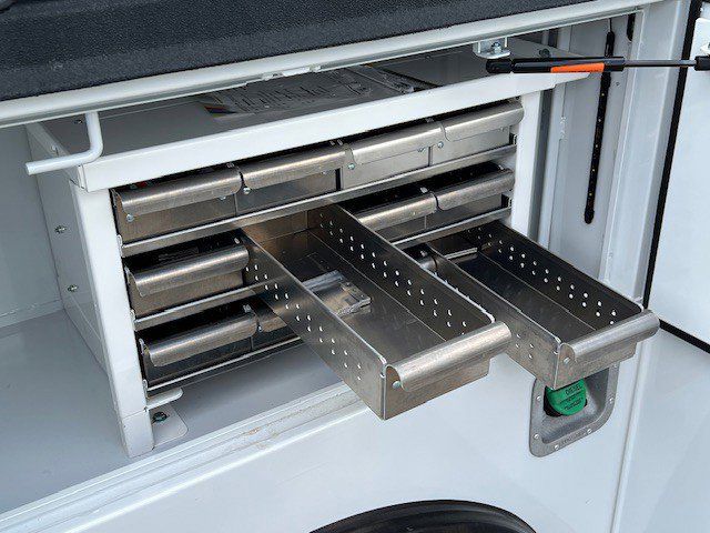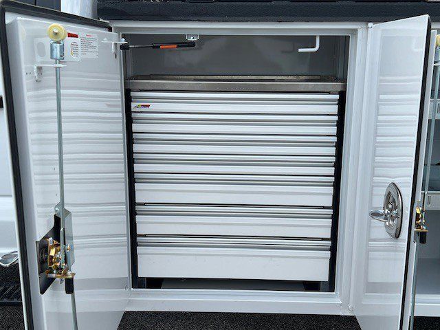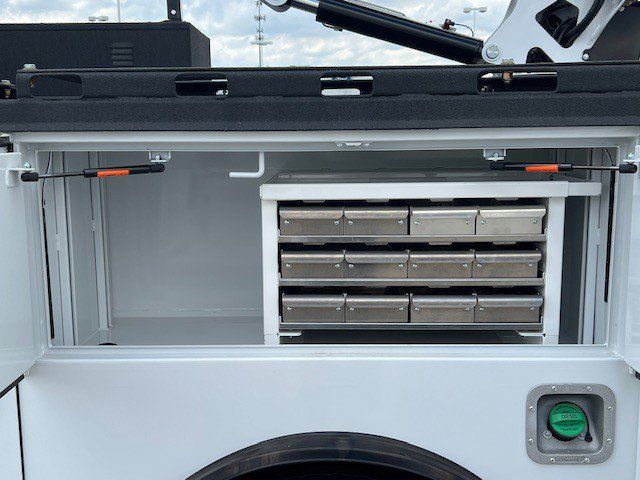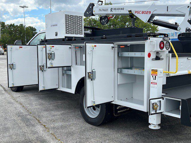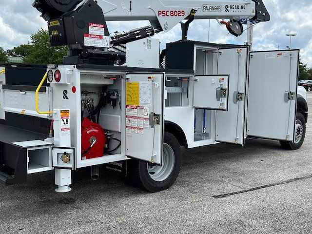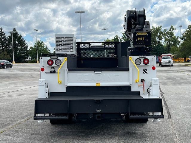 11FT READING RM-45 MASTER MECHANICS BODY. PALFINGER 8,000# CRANE. VANAIR 40 CFM AIR COMPRESSOR. SPRAY LINER ALL LOADSPACE OF BODY, TAILGATE, REAR BUMPER. LED COMPARTMENT LIGHTS.