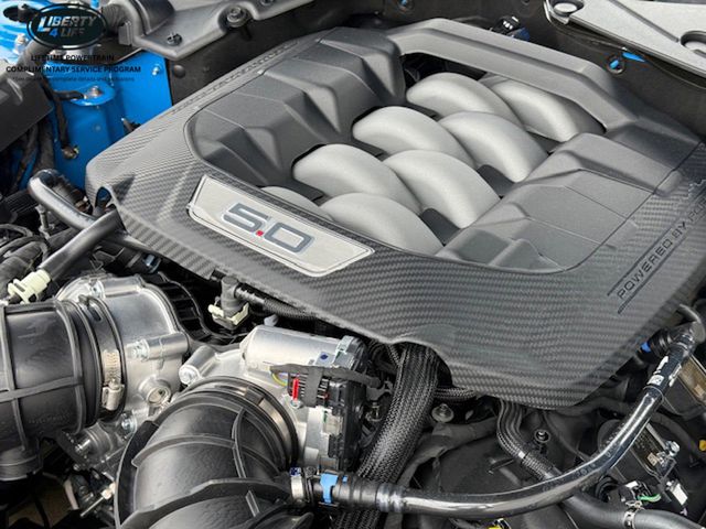 The stunning blue exterior is complemented by a range of premium features, including the BREMBO Brake System with Performance Linings, Active Valve Performance Exhaust, and 20-inch Premium-Painted Aluminum Wheels. Step inside and you'll be surrounded by luxurious leather-trimmed bucket seats with color accents, a heated steering wheel, and the advanced SYNC 4 infotainment system.
