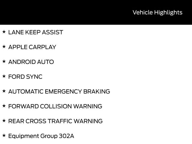 - Android Auto, Apple CarPlay, Automatic Emergency Braking, AWD/4WD, Bluetooth, Cruise Control, Ford SYNC, Forward Collision Warning, Lane Departure Warning, Lane Keep Assist, Power Locks, Power Windows, Rear Cross Traffic Warning, Remote Start, Steering Wheel Controls