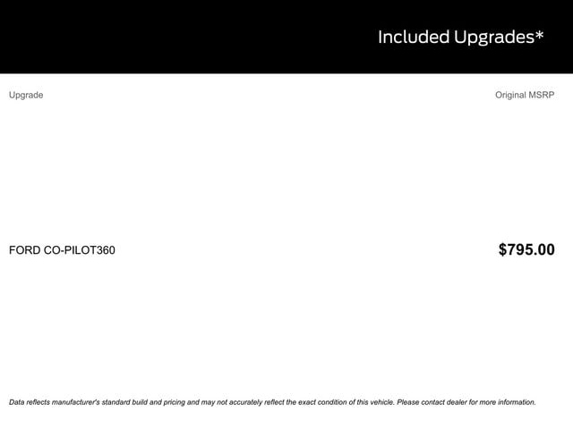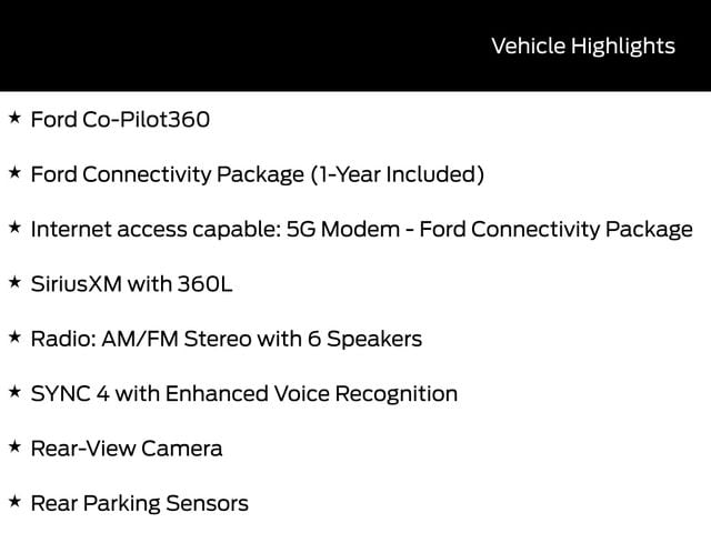 - Equipment Group 302A, Ford Co-Pilot360, Ford Connectivity Package (1-Year Included), Internet access capable: 5G Modem - Ford Connectivity Package