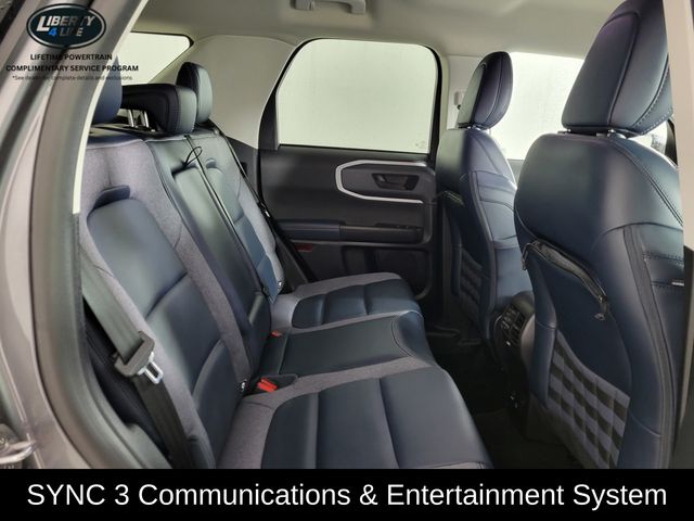 The Outer Banks trim level takes the Bronco Sport's adventurous spirit to the next level, with premium features like leather-trimmed heated sport contour bucket seats, a heated steering wheel, and a painted Shadow Black roof that adds a bold, distinctive look. The SYNC 3 communications and entertainment system with Apple CarPlay and Android Auto integration keeps you connected and entertained on the go.