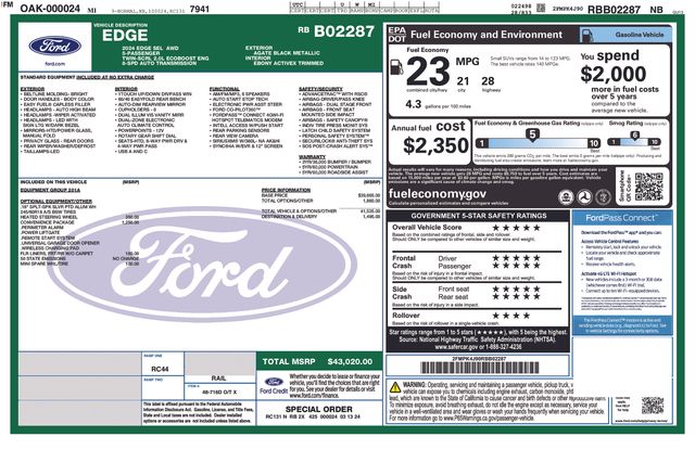 2024 Ford Edge SEL SUV EcoBoost I4 GTDi DOHC Turbocharged VCT